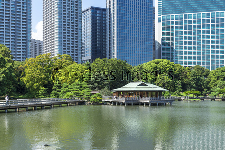 浜離宮恩賜庭園の中島の御茶屋と潮入の池 写真素材 フォトライブラリー Photolibrary